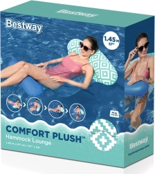 Bestway Comfort Plush je štýlová a pohodlná plávajúca hamaka, ktorá kombinuje zamatovo jemný povrch s priedušnou sieťovinou. Ležiaca plocha CoolDown udrží vaše telo tesne pod hladinou, takže aj v horúčave zostanete príjemne osviežení. Po kontakte s vodou navyše farby vzoru ešte viac vyniknú.
