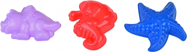 Formičky v tvare dinosaura, morského koníka a hviezdice spestria každú pieskovú stavbu a podporia detskú predstavivosť.