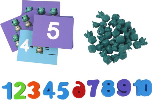 30 obojstranných kariet so zadanými príkladmi podporuje postupné učenie – od jednoduchého počítania po základné sčítanie a odčítanie.