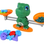 Dinosauří váha s dvojicou misiek pomáha deťom pochopiť, ako čísla a množstvá vyvažovať. Ideálne na prvé stretnutie s pojmami viac/menej a rovná sa.