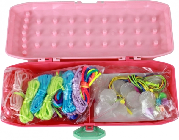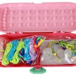 Táto kreatívna sada pre malých tvorcov premení každú chvíľu na zábavné šperkárske štúdio. Elegantné ružové puzdro slúži ako úhľadná organizácia materiálov aj ako praktická pracovná základňa – plastové kolíky a gumičky umožnia ľahké prepletanie a vytváranie štýlových náramkov podľa nálady.