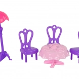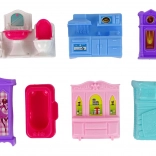 Sada obsahuje všetky potrebné doplnky pre usporiadanie štyroch krásnych miestností, ako je kuchyňa, obývacia izba, kúpeľňa a spálňa. Deti môžu vymýšľať rôzne príbehy, organizovať párty pre bábiky a prehrávať každodenné situácie.