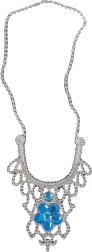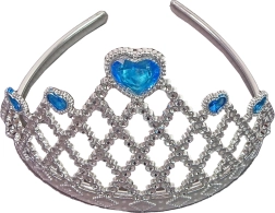 Krásna koruna s modrými srdcovými ozdobami, dekorovaná zložitou mriežkovou prácou. Vhodná pre kostýmové účely.