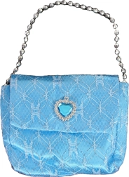 Štýlová modrá kabelka s elegantným strieborným vzorom a srdcovou ozdobou. Skvelá na neformálne aj formálne príležitosti.