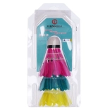Sada farebných košíčkov na badminton je ideálna na vonkajšiu zábavu, tréning aj školský telocvik. Vďaka výrazným farbám sú košíčky výborne viditeľné a ľahko sa hľadajú aj v horších svetelných podmienkach. Kvalitné plastové prevedenie zaručuje rovnomernú trajektóriu letu a spoľahlivý herný prejav.