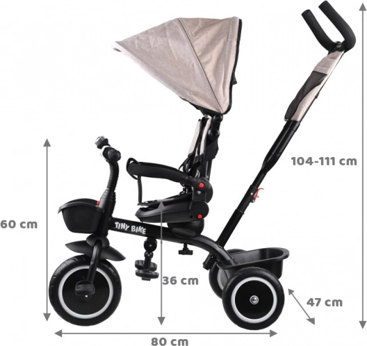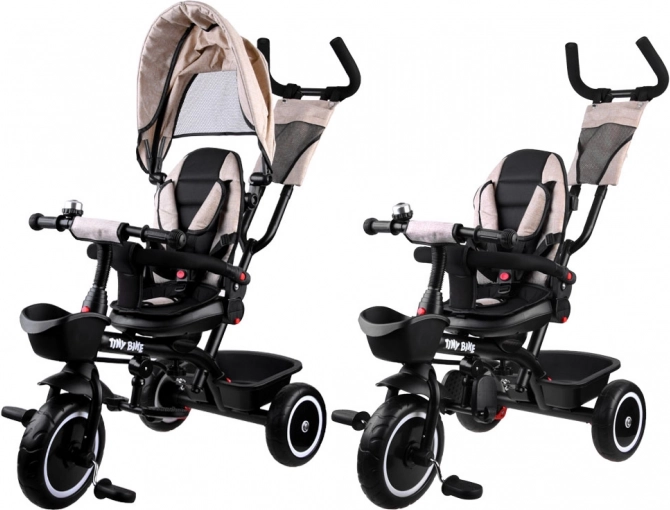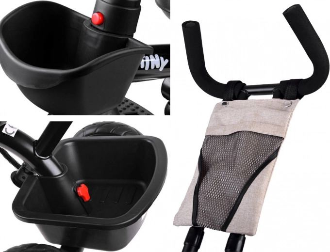 Praktická detská trojkolka 3v1 TINY BIKE rastie s vaším dieťaťom od 6 mesiacov do cca 5 rokov. Ponúka otočné a polohovateľné sedadlo, slnečnú striešku so sieťkou, 5-bodové bezpečnostné pásy, rodičovské riadenie s nastaviteľnou výškou a bezúdržbové kolesá z EVA peny. Vďaka pevnej oceľovej konštrukcii a bohatej výbave je ideálna na každodenné prechádzky.