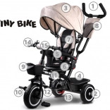 Detský trojkolesový bicykel 3v1 s strieškou TINY BIKE – Béžová