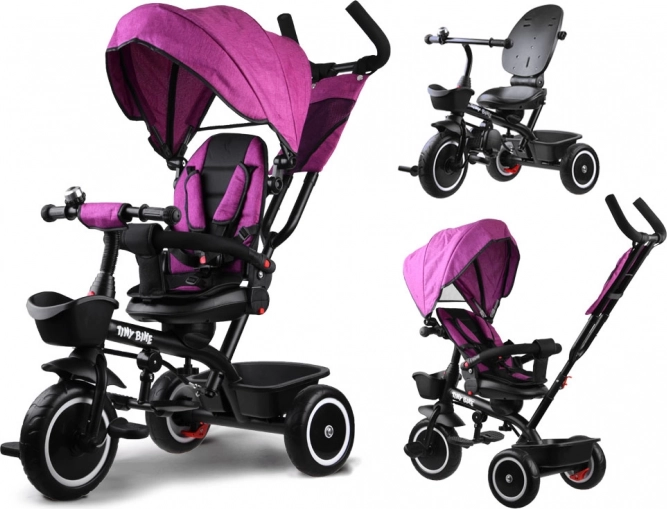 Detská trojkolka 3v1 s otočným sedadlom a strieškou TINY BIKE – Ružová