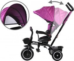 Táto multifunkčná trojkolka kombinuje výhody kočíka, odrážadla a klasickej trojkolky. Vďaka otočnému sedadlu môžete dieťa voziť čelom k rodičovi aj v smere jazdy. Mäkké polstrovanie, päťbodové pásy a odnímateľná bezpečnostná bariérka zaisťujú maximálny komfort a bezpečie.