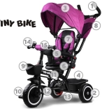 Praktická detská trojkolka 3v1 TINY BIKE s otočným sedadlom a slnečnou strieškou rastie s vaším dieťaťom od 6 mesiacov do 5 rokov. Ponúka pohodlie, 5-bodové pásy, skladaciu striešku so sieťkou, rodičovské riadenie a bezúdržbové EVA kolesá pre bezpečné a plynulé vychádzky.