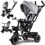 Táto multifunkčná trojkolka TINY BIKE spája výhody kočíka, odrážadla a klasickej trojkolky. Spočiatku ju pohodlne ovládate rodičovskou rukoväťou, neskôr dieťa prejde na samostatné šliapanie. Otočné sedadlo umožní jazdu čelom k rodičovi aj v smere, polstrovaný poťah možno ľahko zložiť a vyprať.