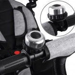 Kovový zvonček na bezpečné upozornenie okolia a pohodlné penové rukoväte na vodiacej tyči uľahčia rodičom vedenie trojkolky v rušnom prostredí.