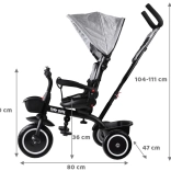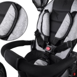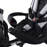 Trojkolka 3v1 rastie spolu s dieťaťom: od režimu s rodičovským vedením cez prvé šliapanie až po samostatnú jazdu. Otočné a polohovateľné sedadlo s mäkkým poťahom, 5-bodové bezpečnostné pásy a mäkčená bezpečnostná hrazda zaisťujú maximálne bezpečie a komfort. Skladacia strieška so zadnou sieťkou vetrá a chráni pred slnkom, vetrom aj ľahkým dažďom.
