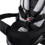Mäkké čalúnenie, bezpečnostná hrazda a 5-bodové pásy zaistia pohodlie aj istotu od prvých vychádzok. Sedadlo možno ľahko otočiť proti aj v smere jazdy a operadlo naklopiť na odpočinok.