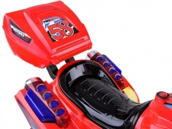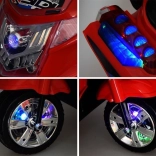 Štýlový detský motocykel na batériu s farebným LED osvetlením vpredu, po stranách aj v kolesách prináša bezpečnú a zábavnú jazdu doma aj vonku. Vďaka elektrickému brzdeniu po uvoľnení plynu, pohodlnému nasadaniu a praktickému zadnému kufríku je ideálny pre malých jazdcov, ktorí milujú rýchlu jazdu a svetelné efekty.