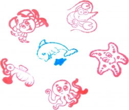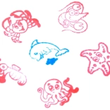 Pečiatky sú vyrobené z odolného plastu a majú integrovaný vankúšik s atramentom, takže nepotrebujete žiadne ďalšie pomôcky. Stačí papier, pevne pritlačiť – a morský svet je na svete!