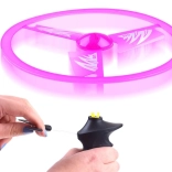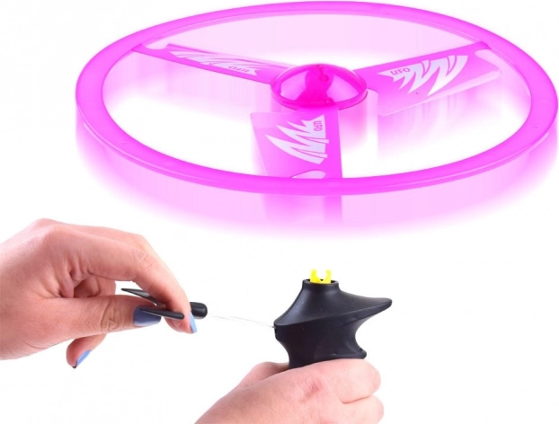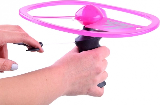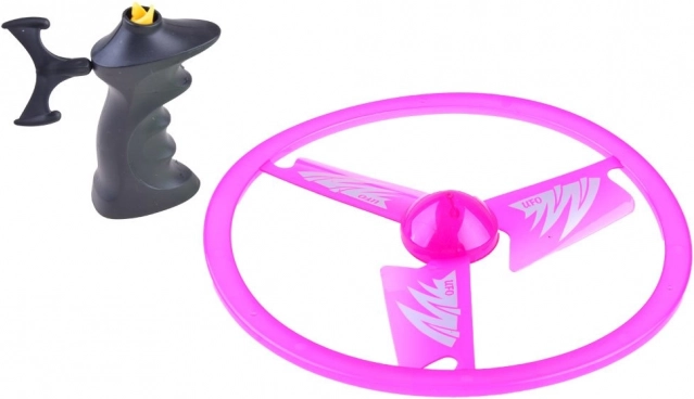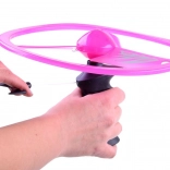 Ovládanie je jednoduché: nasaďte disk na rukoväť, potiahnite za šnúrku a sledujte, ako sa ružové „UFO“ vznáša. Skvelé na rozvoj koordinačných zručností, pohybu a spoločnej hry.