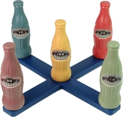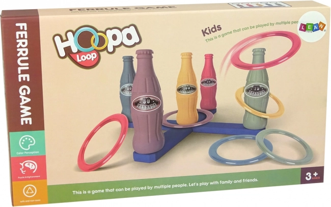 Táto klasická hádzacia hra v modernom prevedení prináša jednoduché pravidlá a veľkú porciu zábavy. Cieľom je hádzať krúžky tak, aby dopadli na farebné fľaše umiestnené na krížovej základni. Každá fľaša má priradené body, takže si ľahko vytvoríte súťažnú hru pre deti aj dospelých.