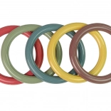 Päť farebných gumových krúžkov a pevné plastové fľaše aj krížová základňa zabezpečia bezpečné používanie a dlhú životnosť.