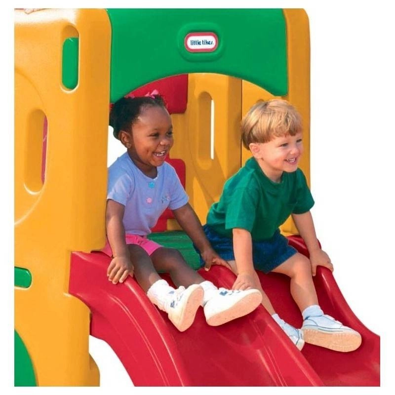 Ihrisko Little Tikes kombinuje lezenie, preliezanie a šmýkanie do jedného kompaktného celku, ktorý skvele zapadne na záhradu aj do škôlky. Vďaka dvom typom šmykľaviek si deti vyberú presne takú jazdu, akú majú rady, a nízky tunel s viacerými prielezmi podporuje aktívnu hru aj sociálnu interakciu.