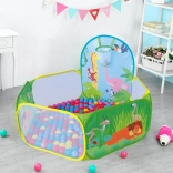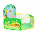 Súčasťou balenia je 50 plastových loptičiek (Ø 6 cm), ktoré premenia stan na zábavný suchý bazénik. Vstavaný kôš na hádzanie motivuje k pohybu, rozvíja koordináciu a presnosť. Odolná podlaha je pripravená na hranie vo vnútri aj vonku.