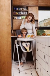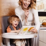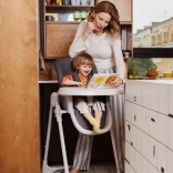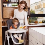 Stolička má dvojstupňové nastavenie tácky a čo je dôležité, vonkajšiu tácku možno umývať v umývačke riadu.