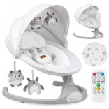 Elektrické hojdátko MoMi Kenani prináša vášmu bábätku upokojujúce hojdanie a vám chvíľku oddychu. Ponúka 5 úrovní hojdania, integrované melódie, Bluetooth pre vlastnú hudbu a diaľkové ovládanie. Ľahká a stabilná konštrukcia, päťbodové pásy, strieška s moskytiérou a ľahko prateľný poťah zabezpečujú bezpečie aj pohodlie doma aj vonku.