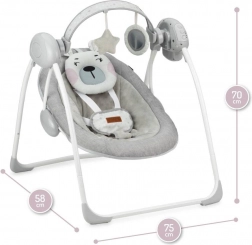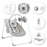 Nosnosť sedadla je vhodná od narodenia do 9 kg. Sedadlo je možné nastaviť do 3 polôh sklonu, hojdanie potom ponúka 5 rôznych rýchlostí. Hojdátko je napájané pomocou batérií – tie vydržia až 180 hodín. Konštrukcia je veľmi stabilná, má protišmykové nožičky a sedadlo je vybavené 5-bodovými pásmi s krytou prackou.