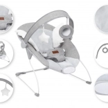 Lehátko obsahuje senzorickú jednotku s až 8 melódiami a 3 úrovňami vibrácií, ktoré harmonicky dopĺňajú hojdanie podľa detských pohybov.