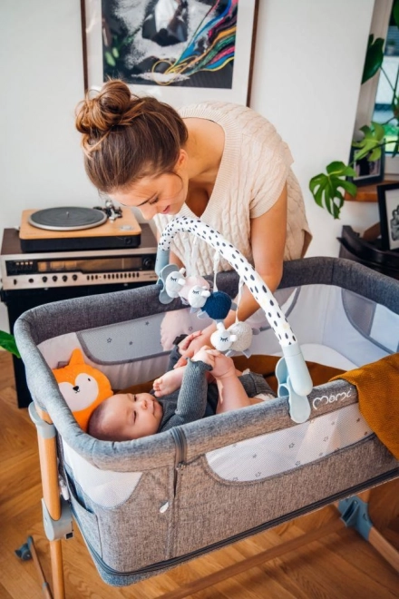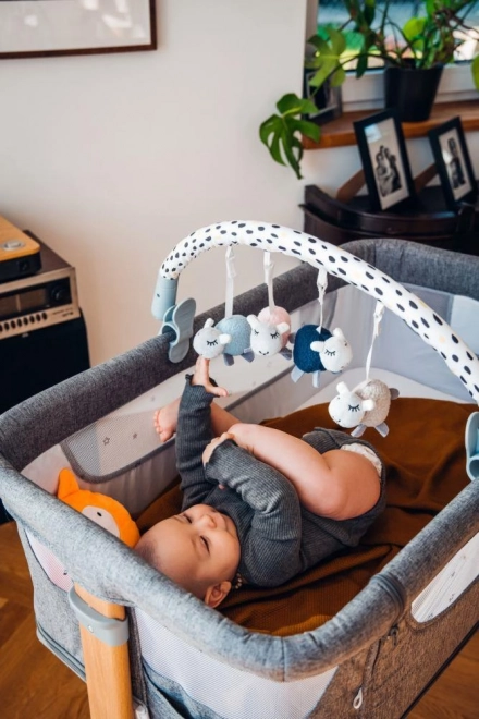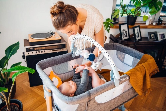 Bude používať hrazdičku s hračkami MoMi JOY v aute alebo na prechádzke. Bude sa hrať s hračkami oddelenými od hrazdičky, ktoré možno použiť ako plyšové hračky.
