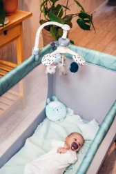 Upokojte bábätko jemným pohybom a melódiami. Hudobný kolotoč MoMi KIKI s univerzálnym držiakom ľahko pripevníte na postieľku, kočík aj autosedačku. Ponúka 6 upokojujúcich melódií vrátane bieleho šumu, pomalú rotáciu a mäkké senzorické hračky v tlmených farbách, ktoré možno zložiť a prať.