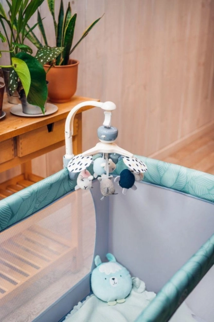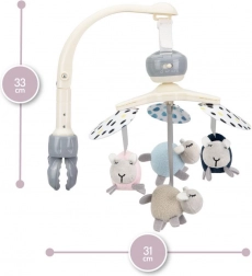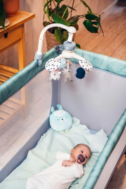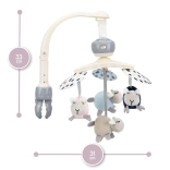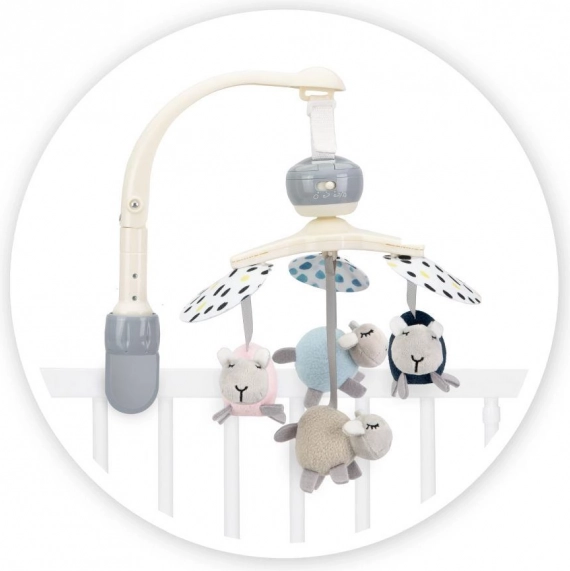 Šesť jemných melódií vrátane bieleho šumu pomáha bábätku upokojiť sa a ľahšie zaspať, zatiaľ čo pomalá rotácia podporuje sústredenie.