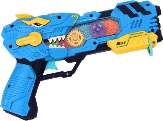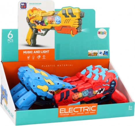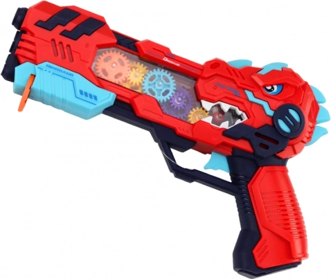Objavte akčnú zábavu s pištoľou v tvare dinosaura, ktorá kombinuje premietanie dinosaurov, svetelné efekty a zvukové efekty. Každé stlačenie spúšte spustí svetelnú šou s otáčajúcimi sa podsvietenými ozubenými kolesami a realistickými zvukmi.