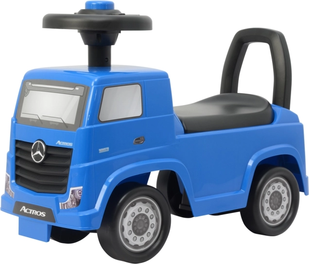Modré odrážadlo MERCEDES Actros je ideálne pre deti, ktoré sa vedia samostatne odrážať nožičkami. Nízka hmotnosť uľahčuje manipuláciu rodičom aj deťom, pevná konštrukcia zase zaručí bezpečnú jazdu na hladkom povrchu doma, na dvore aj na záhrade. Dôraz na detaily – ráfiky, svetlomety a maska – vytvára autentický vzhľad nákladného vozidla.