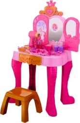 Ružový kozmetický stolík pre malé princezné očarí magickým otváraním zrkadiel po priblížení ruky vďaka senzoru gest. Bohatá výbava a premyslené detaily podnecujú fantáziu a podporujú role-play pri česaní, líčení a tvorbe účesov.