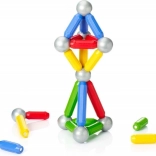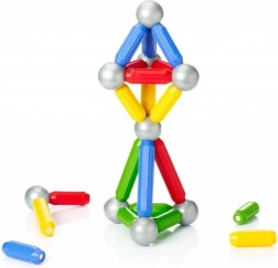 V balení nájdete 3 dlhé tyčky (cca 12 cm), 12 stredných tyčiek a 8 spojovacích gúľ. Sada je plne kompatibilná so všetkými stavebnicami SMARTMAX a súčasťou je aj brožúrka s inšpiráciami. Produkt zodpovedá normám ASTM F963 a EN71.