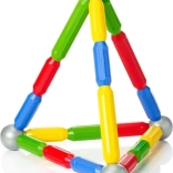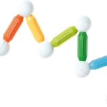 Tyčky a kovové gule sa spájajú jediným kliknutím. Deti bez námahy vytvoria 2D aj 3D tvary, od veží po mosty.