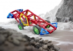 Postavte si pretekárske autá podľa návodov alebo vlastnej fantázie! GEOSMART Roboracer je dynamická magnetická stavebnica s pestrými farbami a robustnou konštrukciou, ktorá láka k objavovaniu základných technických princípov. Silné magnety s dvojitým bezpečnostným systémom držia modely pevne pokope a zabezpečujú dlhú životnosť hračky.