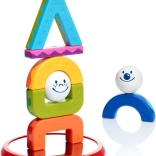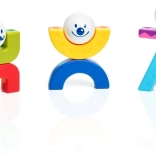 Farebné tvary a guličky s tvárami podporujú jemnú motoriku, koordináciu oko–ruka a priestorové vnímanie. Ideálna hračka pre prvé stavebné pokusy.