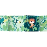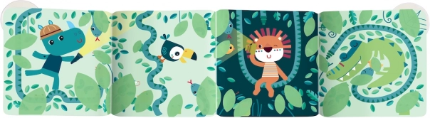 Ponorte túto magickú knižku do teplej vody a sledujte, ako sa pred vašimi očami zjaví vzrušujúci príbeh. Knižka je opatrená 2 prísavkami, vďaka ktorým ju môžete ľahko pripevniť k vani alebo obkladom a vytvoriť tak zábavný panel na rozprávanie príbehov o dobrodružstvách v džungli. Počítajte s tým, že deti budú rady podieľať sa na hľadaní malých zvieratiek ukrytých v hlbokej džungli.