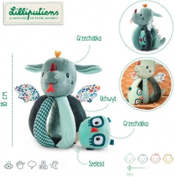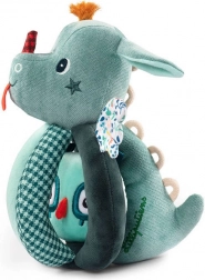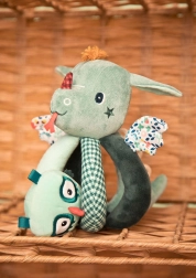 Zoznámte sa s dráčikom Joe – farebným parťákom na prvé objavovanie. Telo v tvare guličky tvorí päť mäkkých úchytov, jeden so šupinkami na chrbte, krídla s rôznymi materiálmi a odnímateľná sovička so skrytou hrkálkou. V hlavičke je zvoniaca hrkálka, ďalšie zvuky pridáva šuštivý materiál. Hračka podporuje úchop, triasenie, vkladanie a vyťahovanie, stimuluje zrak, sluch aj hmat.