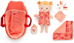 Set podporuje jemnú motoriku, emocionálny rozvoj aj fantáziu prostredníctvom hry na rodinu. Obojstranný košík s ušami uľahčí prenášanie, obojstranná dečka poslúži ako prikrývka aj prebaľovacia podložka. Bábiku možno prať na 30 °C v jemnom programe, aby ostala stále svieža a pripravená na ďalšie dobrodružstvá.