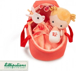 Roztomilá textilná bábika bábätko Lena od značky Lilliputiens je ideálna na mojkanie, ukladanie na spánok aj prvé role-play starostlivosti o bábätko. Set obsahuje obojstranný mäkký košík so strieškou a ušami, prikrývku–prebaľovaciu podložku, mini mojkací vankúšik–jednorožec a plyšovú fľaštičku s magnetom pre realistické „kŕmenie“. Bábika má snímateľné oblečenie, jemné detaily a je bezpečná od 12 mesiacov.