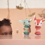 Jelenček Stella je neuveriteľne zábavná hračka, ktorá sa pri najmenšom dotyku rozvlní. Jej textilná hlava a certifikované drevené krúžky zabezpečujú bezpečnosť a kvalitu. Vhodné pre deti od 6 mesiacov, čo z nej robí perfektného spoločníka pre najmenších.