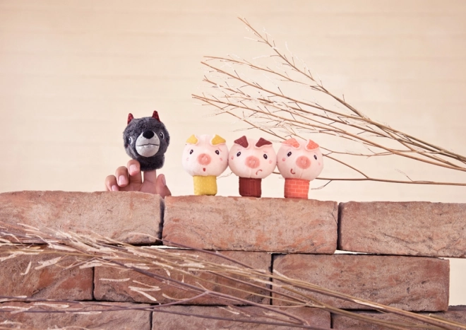 Oživte klasickú rozprávku TRI PRASIATKA s roztomilou sadou prstových maňušiek od LILLIPUTIENS. Mäkučké textilné maňušky vlka a troch prasiatok padnú na detské aj dospelé prsty a premenia čítanie na hravú, spoločnú chvíľku.