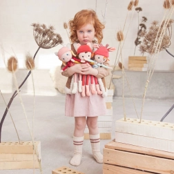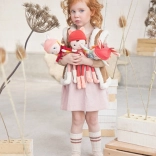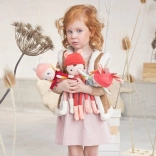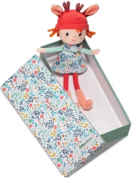 Súčasťou je odnímateľná pletená čiapka s uškami a parôžkami, ktoré odkazujú na srdcovú postavu značky – srnku Stellu. Vysoké chlpaté ružové čižmičky a dlhé pružné nožičky podporujú ľahké držanie aj obliekacie hry. Darčeková krabička s kvetinovým vekom je pevná a skvele poslúži na ukladanie bábiky aj detských pokladov.