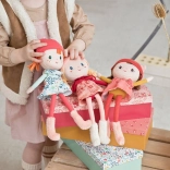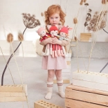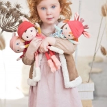 Bábika Lena meria 30 cm a je vyrobená z príjemne mäkkých textílií, ktoré lákajú k objatiu. Dva blond vrkoče, vyšívané oči, nos aj úsmev zaručujú, že je hračka bezpečná a odolná aj pre najmenších. Štýl dotvárajú šaty s lesným vzorom, hrejivá šálka a odnímateľná čiapka s uškami a rohom – hravý odkaz na jednorožca Lenu.
