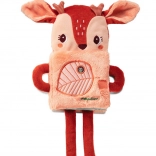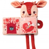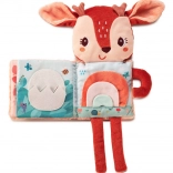 Interaktívna maznaná knižka s postavičkou jeleňa Stelly od Lilliputiens je ideálne prvé „čítanie“ pre bábätká od 3 mesiacov. Kombinuje plyšovú hračku a textilnú knižku s prekvapením na každej stránke: šušťanie, hrkálku, ohybnÉ zrkadielko a dokonca prvok, ktorý svieti v tme. Rozvíja zrak, sluch, hmat, podporuje upokojenie a buduje lásku ku knihám.
