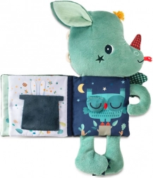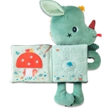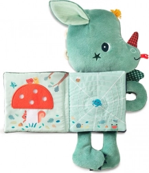 Dráčik Joe drží mäkkú knižku plnú ilustrácií lesných zvieratiek a čarovných motívov. Stránky šuštia a niektoré hrkajú, aby podporili zmyslové vnímanie.