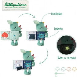 Tento multifunkčný mojkáčik s knižkou od značky Lilliputiens spája jemnú plyšovú hračku a prvé čítanie v jednom. Dráčik Joe má výrazné detaily – krídelká, ušká, roztomilý jazýček a praktické uchytenie knižky na suchý zips. Každá stránka prekvapí iným efektom, ktorý rozvíja zrak, sluch aj hmat.